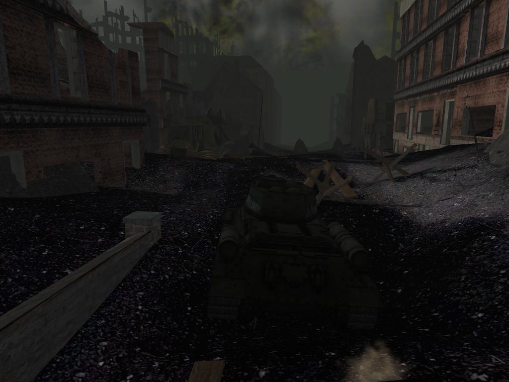 Ein russischer Panzer in den Ruinen Berlins