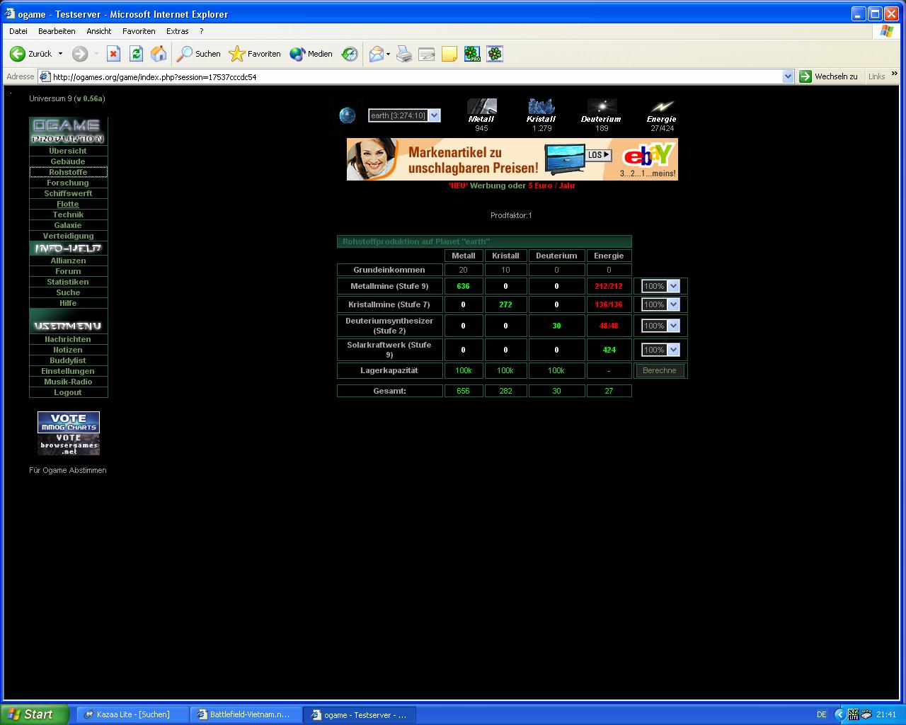 Hier mal mein momentaner Stand ,ich leide momentan unter Deuterium Mangel ,weil sonst hätte ich schon 3 Solar Satelliten. <_< Wenn jeamnd ein bisschen was übrig hatt kann er es mir gerne schicken :)