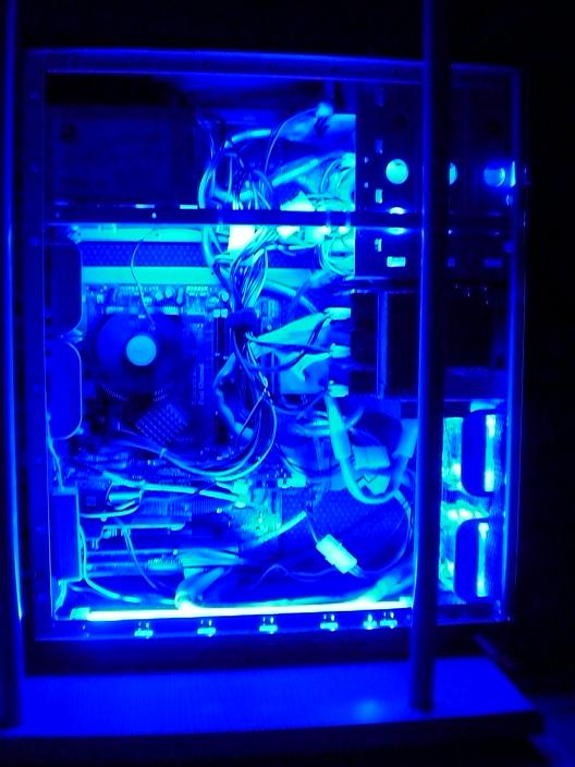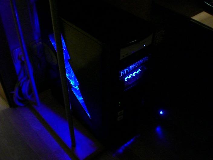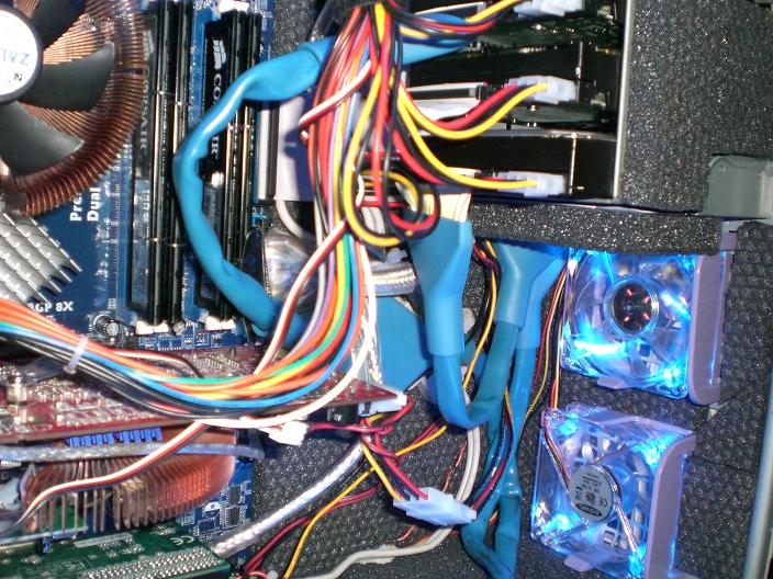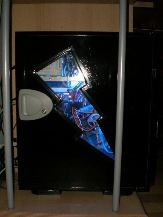 Crashbreaker 0 Melden Geschrieben 10. Oktober 2006 (bearbeitet) Frontlüfter ist eh schlecht. Lass doch einfach den/die Frontlüfter weg und lass da nur ein Lüftungsloch. Die Hecklüfter saugen die Luft ja automatisch von vorne an. Das Problem dabei ist: Die Frontlüfter sind auch auf vollem Speed sehr leise. Die Hecklüfter dagegen sind so laut (bei voller Geschwindigkeit), dass der Lärm von ihnen durch die Front nach vorne dringt. Und nur mit Hecklüftern ist der Luftstrom nicht optimal, hab das schon getestet. Außerdem kann ich auf meinen 3. Frontlüfter (auf den Bildern nicht sichtbar, weil ich ihn selber zwischen Frontpanel und Gehäuse reingeklebt hab) nicht verzichten, da der die Festplatten bei Bedarf kühlt (man sieht ja auf den Fotos, dass im Festplattenkäfig sehr viel Hitze entsteht). Mit einem besonderen Schalter auf der Rückseite schalte ich ihn ein und aus. €dit: Ich werde mir sowieso demnächst ein paar Festplattenkühler zulegen müssen. Wenn das RAID-System läuft (die beiden äußeren Festplatten) wird die dritte Platte (mit dem System drauf, mittlere Platte) extrem heiß (an die 43°). Bearbeitet 10. Oktober 2006 von Crashbreaker