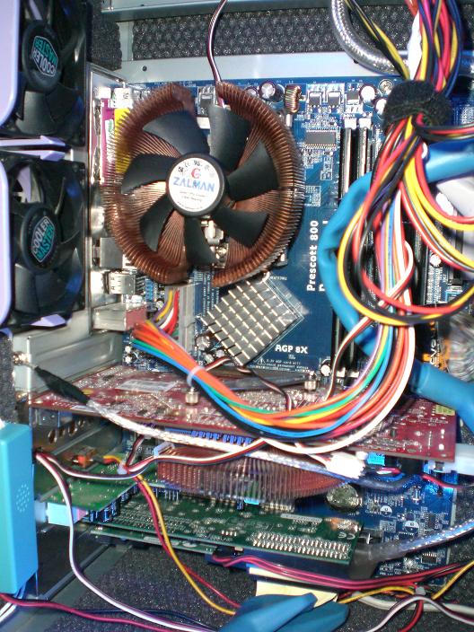 Crashbreaker 0 Melden Geschrieben 10. Oktober 2006 (bearbeitet) Mein PC (mit neuer Lüftersteuerung und zwei neuen 80mm-Lüftern): ASRock P4V88+ Pentium 4 Northwood 3.2 GHz 4*512 MB Corsair CMX512-3200C2 2-2-2-6 @ 133 MHz (Dual Channel) Gainward 6800GT/Ultra 2400 (GeForce 6800GT/Ultra) @ 421/567 MHz Western Digital WD2500BB-22GUC0 (232 GB) 3ware 7006 RAID (2*80 GB RAID 0) ?dit: Mehr aufräumen ist bei mir leider nicht möglich. Bearbeitet 10. Oktober 2006 von Crashbreaker