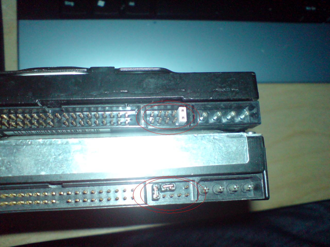 DerGrieche 0 Melden Geschrieben 31. März 2008 Die unterschiedlich gesteckten Dinger sind Jumper... Die geben vor welche Festplatte Master und welche Slave ist... und Nein das sind keine Sata Platten... Die sehen so aus. Diese L-Förmigen Dinger sind der Sata-Anschluss.