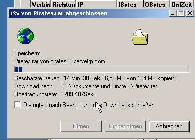 geil . eben hatte ich einen auf dem server der meinte ganz stolz das er jetzt nun endlich auch pirates 03 spielen kann(auf english) weil er so nen coolen kollegen hat der ihm seine zugangsdaten gegeben hat (fileplanet). Er müsse ihm lediglich 5 dollar für den download zahlen.
