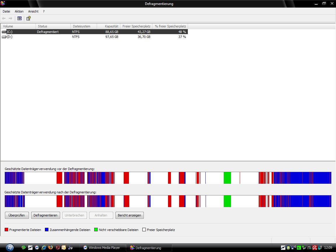 Sven 134 Melden Geschrieben 12. Januar 2008 Bei NFTS ist Defragmentieren verlorene Zeit, das ist nur für FAT-Dateisysteme sinnvoll.