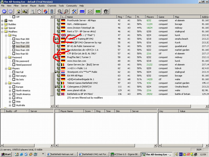 Hier mal ein Bild auf die eingekreissten Server kannst nich joinen da sie Passwortgeschüztzt sind!!!!