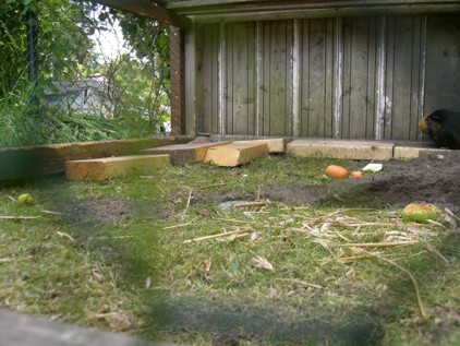 Der Schlawiner ist gerade dabei, sich ne Höhle zu baun...naja..solang er sich nicht rausgräbt (hat er schon oft gemacht)