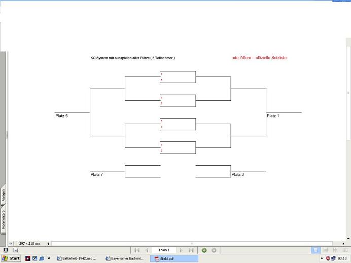 Fingah 40 Melden Geschrieben 28. Dezember 2004 Okay die ersten Paarungen sind: [KaLLePaLLe + IvaN] vs. [Crookza + niels-sein-vater] [Man-of-Peace + pacman] vs. [1c3 + OzZy] [LookBehindYou + Lampe] vs. [d4rk + mTx] [CloneCommander + ^boo^] vs. [Roger That! + Manef] [Black Shark + King of Kings] vs. [st4rfire + Psyconer] Viel Glück an alle! [Edit] Da es nich aufgeht für die zweite Runde würde Ich sagen dass der beste Verlierer in die zweite Runde kommt - Lucky Looser halt - [/Edit]