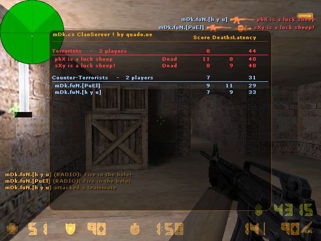 OzZy 0 Melden Geschrieben 14. Januar 2005 [KaLLePaLLe + IvaN] vs. [Crookza + niels-sein-vater] [LookBehindYou + Lampe] vs. [d4rk + mTx] [CloneCommander + ^boo^] vs. [Roger That! + Manef] [black Shark + King of Kings] vs. [st4rfire + Psyconer] [Man-of-Peace + pacman] vs. [Friend + OzZy] map---> de_dust Ergebnis 16:14