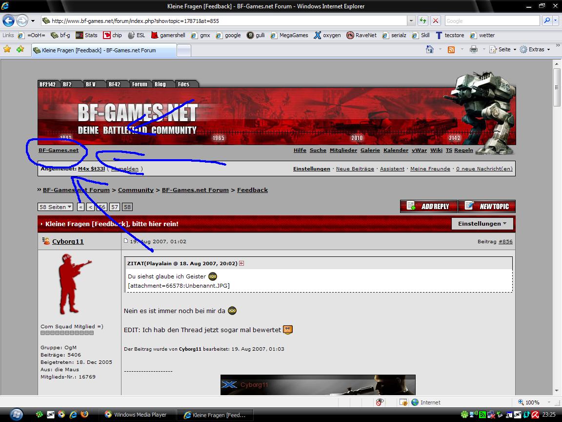 Manitu 10 Melden Geschrieben 26. August 2007 Aber nachdem ich eine Antwort geschrieben habe bzw. den letzten Post gelesen habe muss ich immer erst wieder zu Seitenanfang scrollen um den Button zu klicken. drück doch ganz einfach die "Home"-taste, dann bist du zuoberst. ist ja nicht viel aufwand.