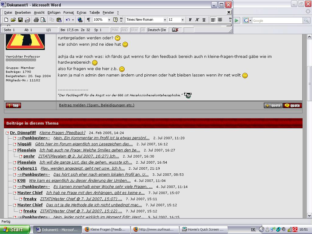 Gast Feature Melden Geschrieben 5. September 2007 Seit ein paar Tagen sieht das Forum bei mir aus, wie auf dem Bild zu sehen. Ist das hier so eingestellt worden und kann man das wieder zurück stellen, so wie es in anderen Foren ist?