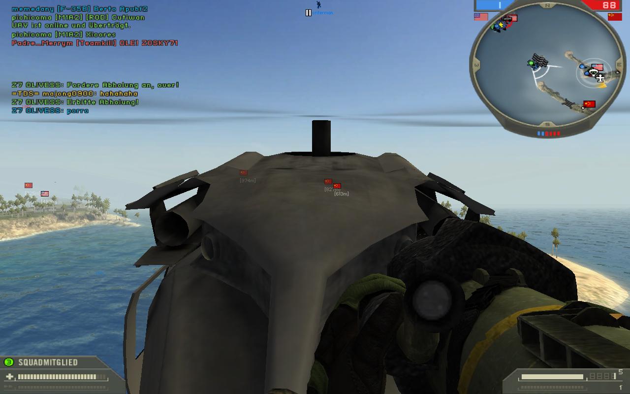 Haudrauff 0 Melden Geschrieben 15. April 2009 Ist auf dem Bild schwer zu erkennen, aber da fliegt doch tatsächlich einer auf dem Dach des Blackhawk mit. Hab leider in der verwirrung meine Scrennshot-Taste nicht gefunden. Ich mach so selten welche. Aber auf der Minimap kann man erkennen das da wer drauf sein muß. Frag mich warum der oben mitfliegt, is doch noch Platz drin. Und ich hab schon gedacht ich kenn schon alles, bzw hab schon alles gesehen......