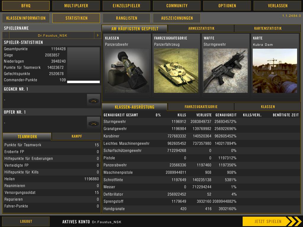 Dr.Faustus 0 Melden Geschrieben 31. Juli 2005 (bearbeitet) Hallo Leute !!! Bin heute, nachdem ich ein bißchen gezockt habe in das Hauptmenü gegangen und was sehe ich da?, Meine Punkte sind weg, meine Auszeichnungen sind auch weg, guckst du die Bilder , die ich beigefügt habe Hab versucht das Spiel neu zu installieren, aber nichts, obwohl bei BF Stats(Signatur) sind die Zahlen richtig, also sind meine Punkte hoffentlich noch da, deswegen bleibt mir nur WIN XP kommplett neu zu installieren, am bessten mit Festplatten Formatierung. Langsam hab ich echt die Schnauze voll, das muss doch echt nicht sein Bearbeitet 31. Juli 2005 von Dr.Faustus