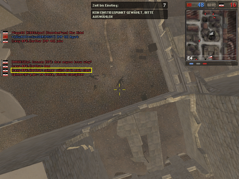 Da sitz ich an einer Browning und seh am Horizont ein Männchen ca. 2x4 Pixel groß, ich baller drauf und der Typ fällt doch glatt um :o , denk ich mir na gut der war eben schon heftig angeschlagen, dann seh ich wieder einen ich halt drauf und der fällt wieder innerhalb einer 1/10 sek um.