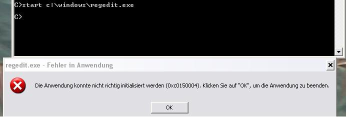 Burner 1,635 Author Report Posted January 27, 2006 (edited) Warum musst du denn die Regedit umbenennen? Kannst du sie nicht einfach über Start - Ausführen -> regedit starten? wenn das nicht klappt: Start - Ausführen -> "cmd" -> "start regedit". Wie kannst du btw. den Firefox starten, wenn .exe-Dateien nicht mehr funktionieren? nun, firefox war ganz gefi*** eingeschädelt... windows tut so als ob er .exe dateien nich mehr kennt... so als ob du eine rm (realmedia datei) hast aber keinen realplayer , windows fragt dich entweder webdienst suchen um datei zu öffnen oder programm aus einer liste auswählen.. da hab ich einfach firefox.exe mit firefox geöffnet und es hat funktioniert.. windoof verarscht... nicht einfach über Start - Ausführen -> regedit starten? wenn das nicht klappt: Start - Ausführen -> "cmd" -> "start regedit". schon probiert..same here das bekomme ich wenn ich cmd über start-ausführen starten möchte... hey freaky wenn dus tatsächlich packst lösche ich auch meinen anti ugly satz in der signatur und erkläre ihn für göttergleich Edited January 27, 2006 by Burner