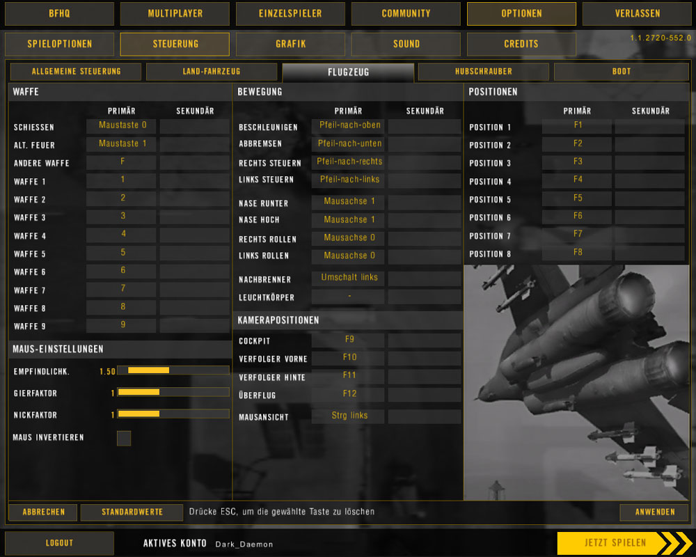 Hardes 0 Autor Melden Geschrieben 27. April 2006 Jo werde mal im lauf der woche ein paar sceen posten! he danke ich kann warten und zur zeit fliege ich jet und heli auch nur pr tastatur glaube nen joystick oder game pad brauch man nicht geht so ganz gut und werde auch immer besser. Hi, ans Forum hier!!! Treibe mich seit geraumer Zeit hier rum und finde es es ganz nett hier vom Ton und von den Tips her. Und da dachte ich mir ich könnt mich mal registrieren und bei Gelegenheit meinen Senf dazu geben. Und ausserdem hab ich das Gefühl das die meisten von Euch recht geduldig sind (kann dann all meine blöden Fragen stellen ) Benutze auch das Rumble Pad von Logitech. Aber hier bei BF2 komm' ich mit der Fliegerei einfach nicht so richtig klar. Also wenn ihr irgenwann mal sonn komischen Typen seht (sir_demencia) der in ein Heli steigt, bringt Euch in Sicherheit und habt ansonsten Spass Nein, im Ernst: trau mich noch nicht im Netz zu fliegen (die bannen mich doch gleich und das wahrscheinlich auch zu recht). Gibt es denn irgendwelche Dinge speziell zu beachten beim Fliegen? Gruß Sir Demencia frag dochmal einen der dir das zeigt online habe auch einen beim clan der gut fliegen kann und hats auch einen gut beigebracht