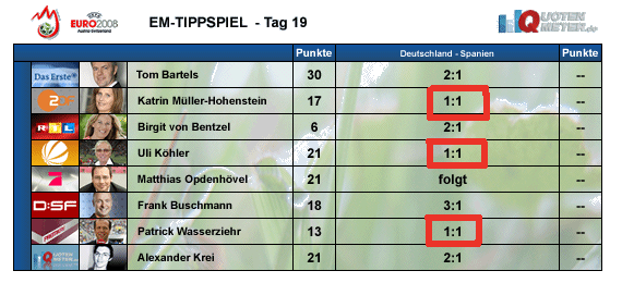Elbarto 64 Melden Geschrieben 29. Juni 2008 Hab ein mulmiges Gefühl.... Ich schätze unsere Chancen stehen fifty-fifty, vielleicht auch nur 50 Prozent