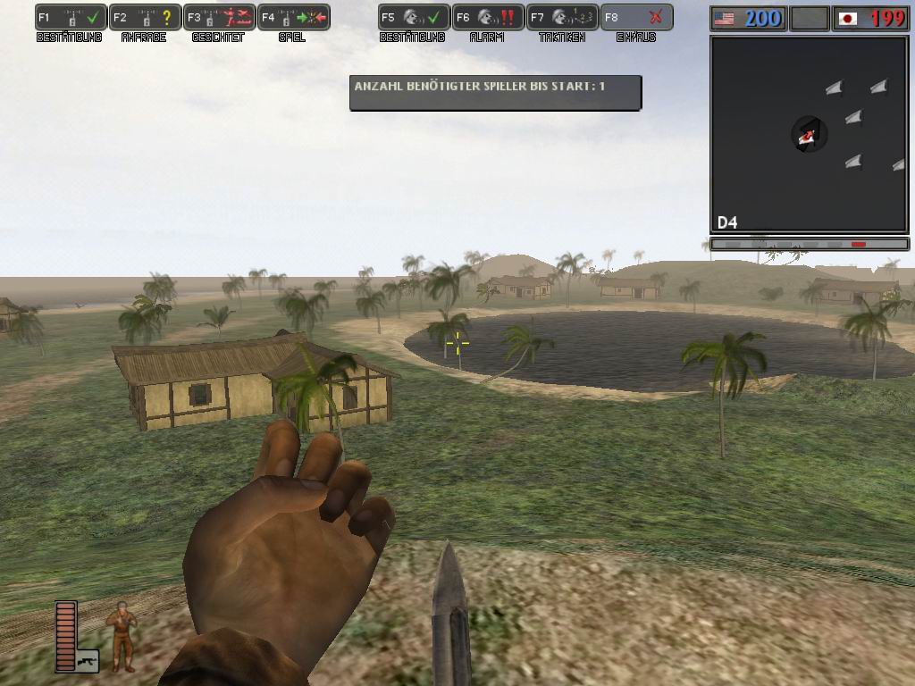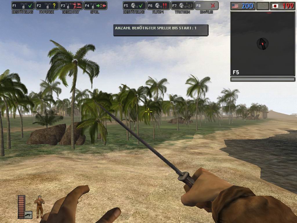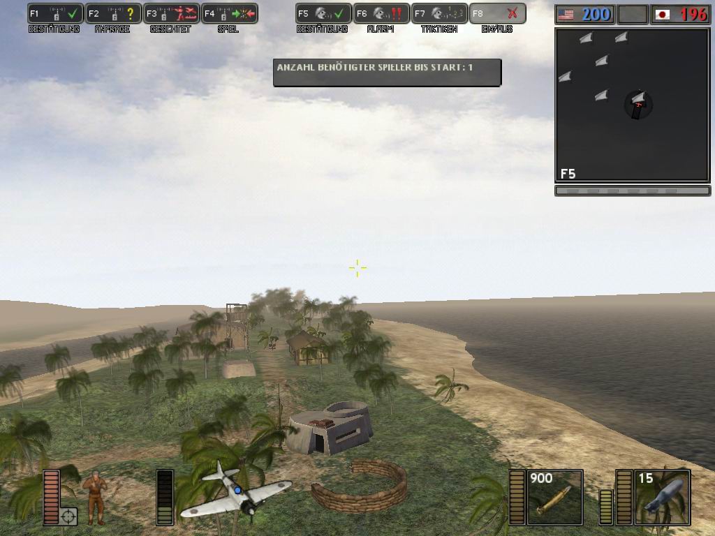 El Dennito 0 Report Posted July 17, 2003 Hallo, ich erstelle gerade meine erste Map mit dem Editor "Battlecraft 1942". Die Map, an der ich im Moment arbeite, ist eine Pazifikmap. Die Japaner starten von einer ferngelegenden Kleininsel im Süden - die Amerikaner von Schiffen. Es geht um eine Insel, die u.a. ein Dorf besitzt. Keine der beiden Nationen hat abgesehen von der Homebase einen weiteren Punkt, so dass es völlig offen bleibt, wer die Insel zuerst übernimmt. Die Map ist derzeit ca. 17 MB gross und ist noch im Alpha-Status (=65%). Einen passenden Namen habe ich noch nicht gefunden. Über Namensvorschläge und weiteren Verbesserungsvorschlägen währe ich euch sehr dankbar. Nun folgen erstmal ein paar Screenshots, die euch ein wenig mehr über die Map verraten! Wie gesagt, Feedback ist erwünscht! Grüße, EL Screen Nr. 1: Westküste