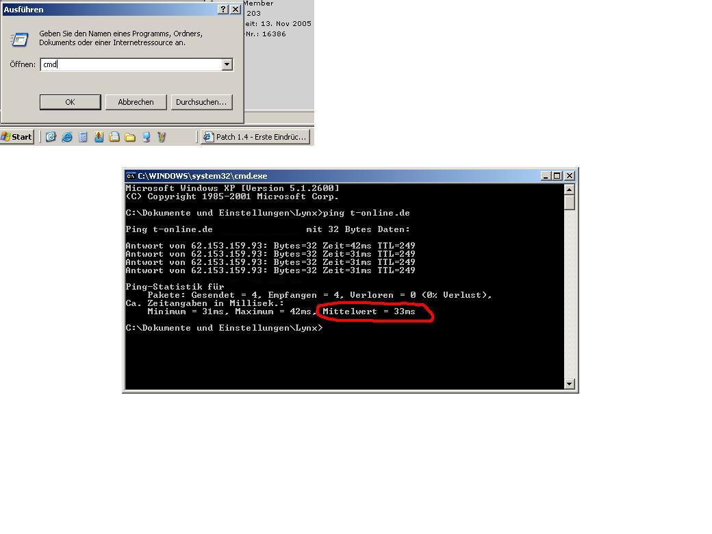 mittlere wert ist dein ping / konnst belibige seite eingeben z.b ping gmx.de oder so... ;)
