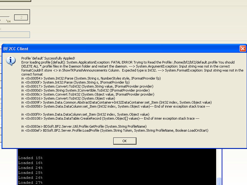 Cypher002 0 Melden Geschrieben 10. September 2006 (bearbeitet) @Cypher002 Aktualisier mal wie ich oben geschrieben habe den BF2CC Server- und clientseitig auf die neuste Version 1.4.2439. Darin wurde der Bug behoben... Also cih hab das neuste bf2cc drauf aber leider is der fehler immernoch. Und der Daemon geht auch wieder ins nirvana sobald das default profil wieder erstellt wurde. Ich schätze mal das der Client das Profil Falsch beschreibt :/ Bearbeitet 10. September 2006 von Cypher002