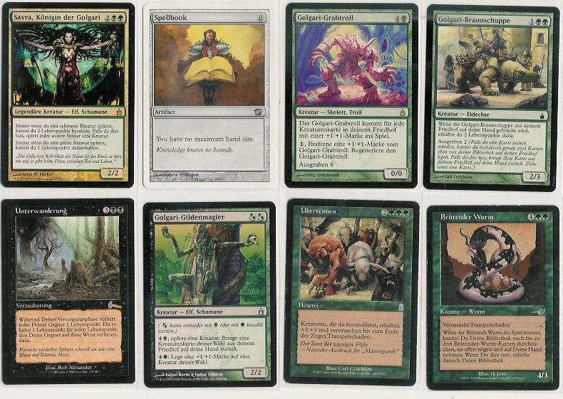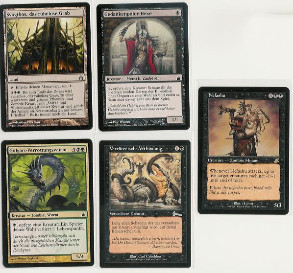 Schulzi 6 Report Posted October 30, 2006 Naja wurde letztes Jahr angesteckt seit dem Spiel ich, hab jetzt auch ein eigenes Deck Schwarz Grün. Tja Lieblingskarte ist bei mir eigentlich der Gesichtslose Metzler ist zwar nicht besonders Stark aber find ich nun mal am besten. Und die Stärkste die ich hab ist eigentlich der Golgari Grabtroll.