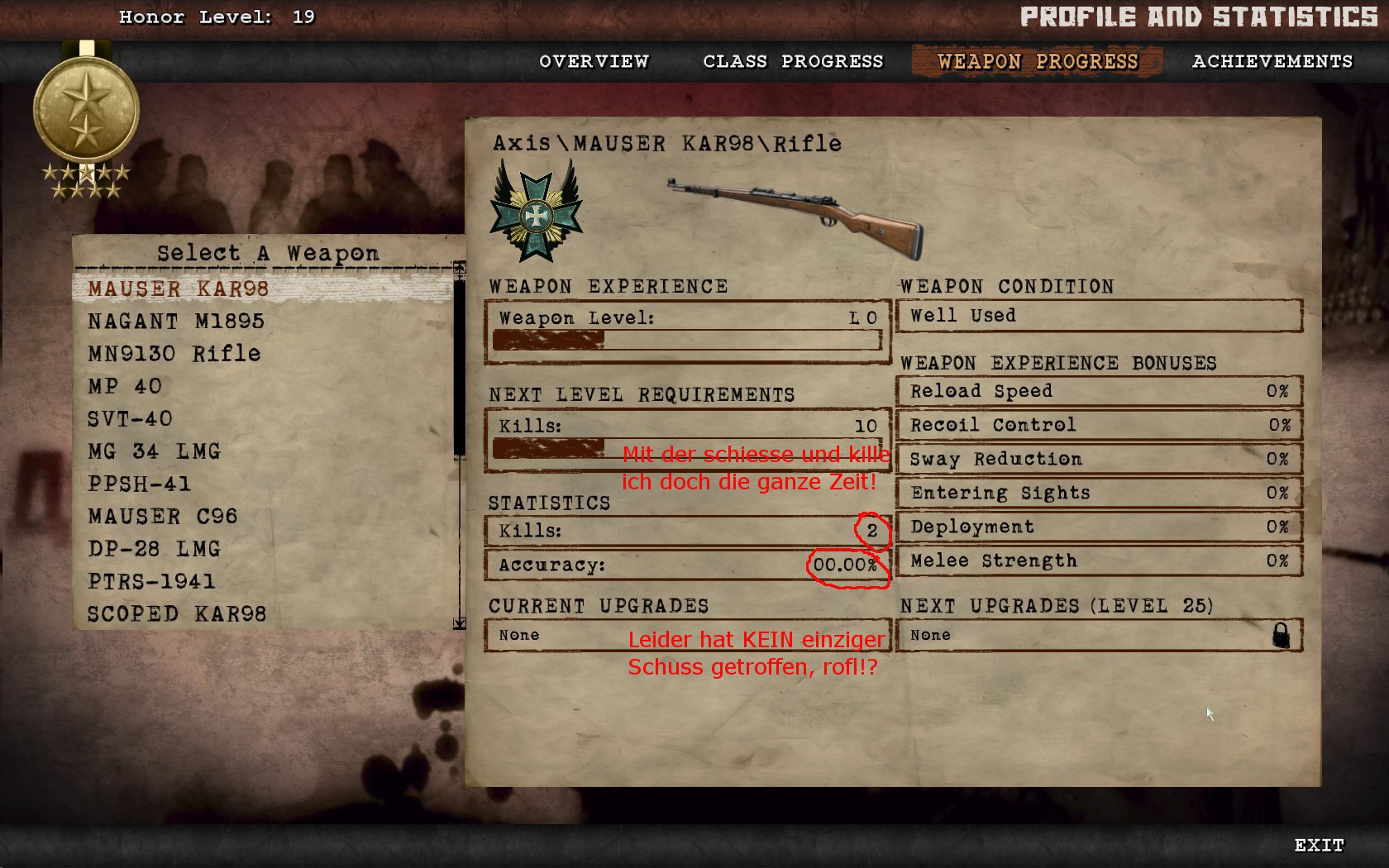 Keldysh 573 Melden Geschrieben 10. September 2011 Ich spiele eigentlich immer auf ranked Servern. Da es sowiso resette wird gibt's erst recht keinen Grund unranked zu spielen. Was mich an meinen Stats stutzig macht habe ich mal an 2 Screenies kenntlich gemacht. Ist das nur bei mir so?
