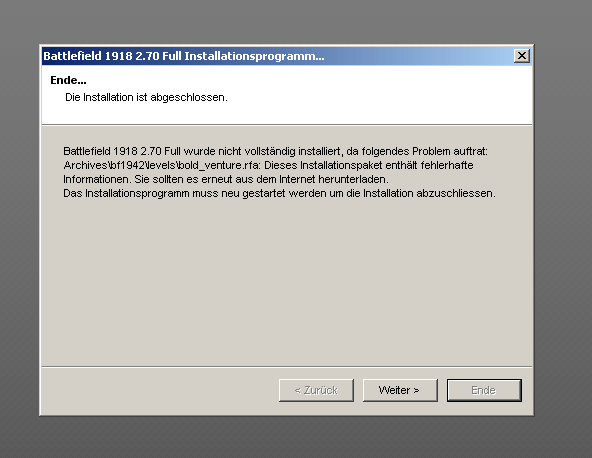 Ich möchte hier nochmal nachhaken. Ich habe mir den Installer mal angeschaut und auch bei mir tritt ein Fehler auf. Ist das zufällig die Meldung? Falls ja, ist das File im Eimer: