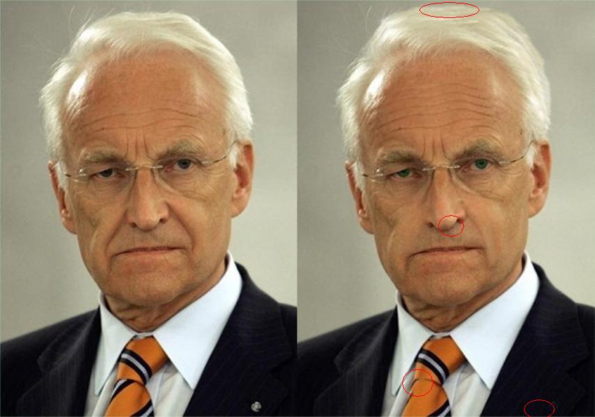 SupporteR 1 Autor Melden Geschrieben 4. Juni 2007 Ok Also bisher so: Ich lass das mal gelten ! 1.Fehler die Stirn 2.Die Haare 3.Die Augenfarbe (Grün) 4.Die Wangen sind nicht mehr so eingedätscht 5.Die Krawatte 6.Der Knopf oder was das ist Du bist =)