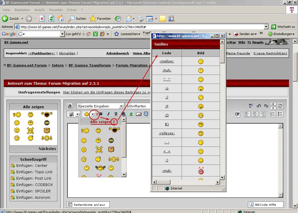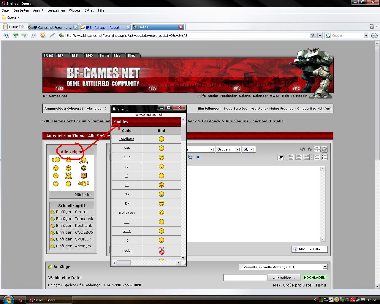 -=Punkbuster=- 166 Melden Geschrieben 6. Juli 2007 Aus gegebenem Anlass noch einmal der Hinweis in Bildform. Es sind weiterhin alle Smilies vorhanden, wenn auch etwas versteckt