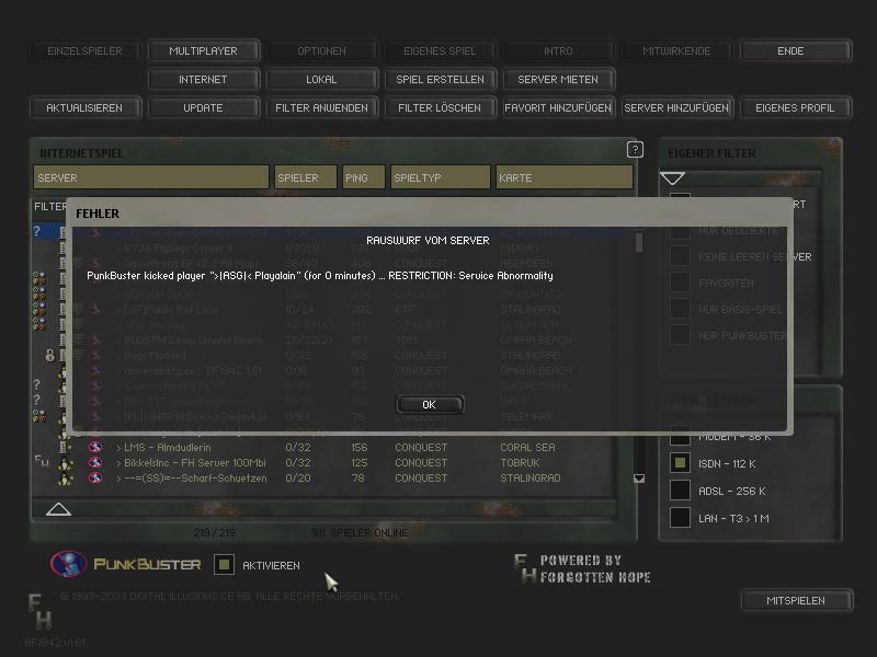 Hast Du beide Versionen der Installation benutzt? Lösche mal alles im Punkbuster-Verzeichnis von Battlefield42 vor dem Installieren/Updaten. Ich habe, wie gesagt, 2 Stunden rumgedoktert, ehe es bei mir lief.