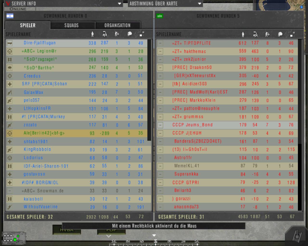 Ale42er 19 Melden Geschrieben 6. Dezember 2010 (bearbeitet) das wochenende war mal wieder ausschlussreich. ich hab bestimmt, -700 punkte nur dadurch erhalten,weil ich zivilisten erschossen habe.^^ blödes thermal,da erkennt man aber auch schlecht,wer freund oder feind is. und seit wann ren´nen die in civis in massen durch die gegend. selbst schuld. Bearbeitet 6. Dezember 2010 von Ale42er