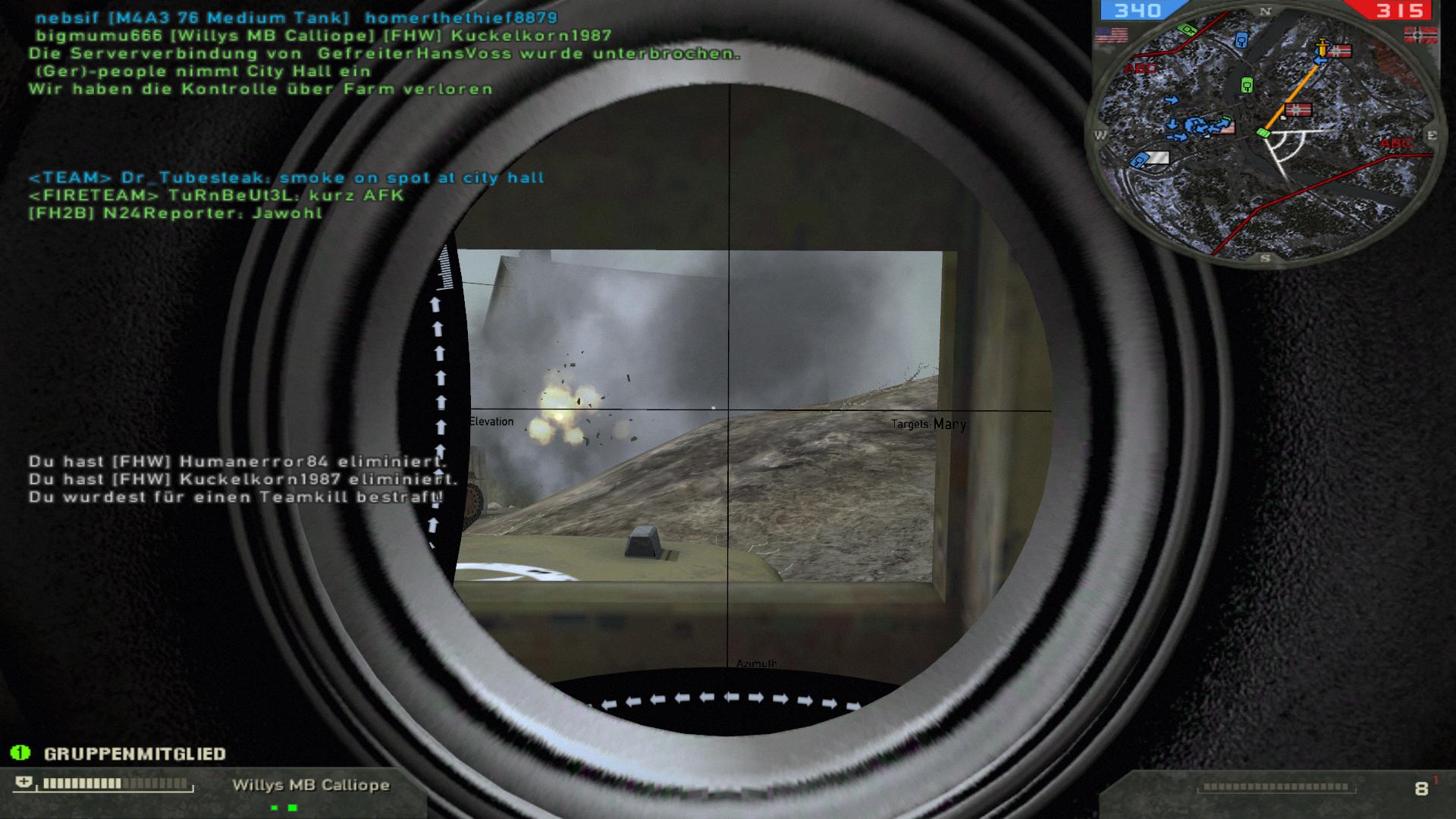 Glob 58 Melden Geschrieben 20. August 2011 soso war wieder ein paar gute runden heute hihi Turnbeutel hat uns mit dem fiat direkt in den tod geführt---> minenfeld hehe hatte grad noch HE im rohr da kam mir der Kt entgegen --->er sieht nach rechts und bemerkt mich zu spät und ich erwisch ihn in letzter sekunde mit der sondermuni squad auf dem weg zu mont