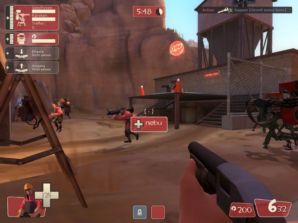 TheBullet 129 Melden Geschrieben 25. Januar 2009 Team Fortress 2 Map: Dustbowl Erst hab ich mit nem Freund gespielt (beide Engineer) dann waren da noch andere engineers und dann gings ab^^ war mega geil!! Ich und mein freund haben nacher die andere engineers beis team geaddet^^ Nacher war die hälfte des gegnerischen Teams Spys