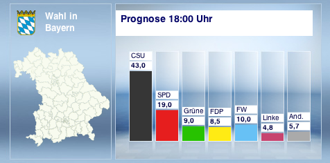 TanteEmma 1436 Melden Geschrieben 28. September 2008 (bearbeitet) Herbe Verluste für die CSU: Quelle:ZDF Bearbeitet 28. September 2008 von TanteEmma