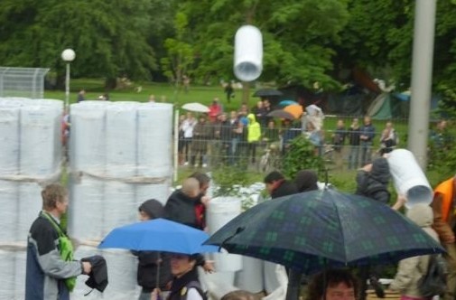 Schön zu sehen ist auch wie im Hintergrund so weiße Rohre über den Zaun fliegen!