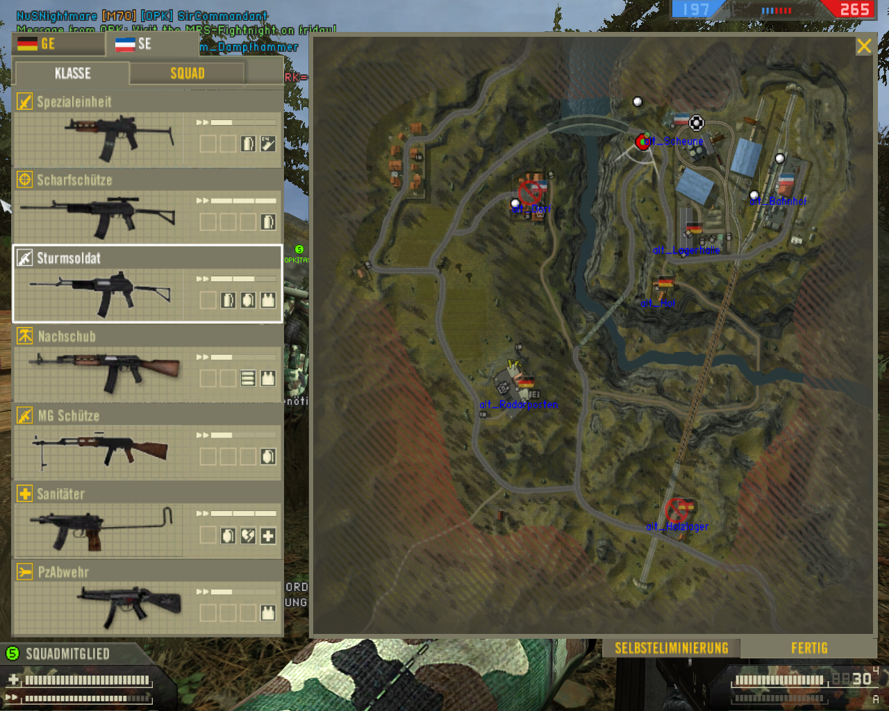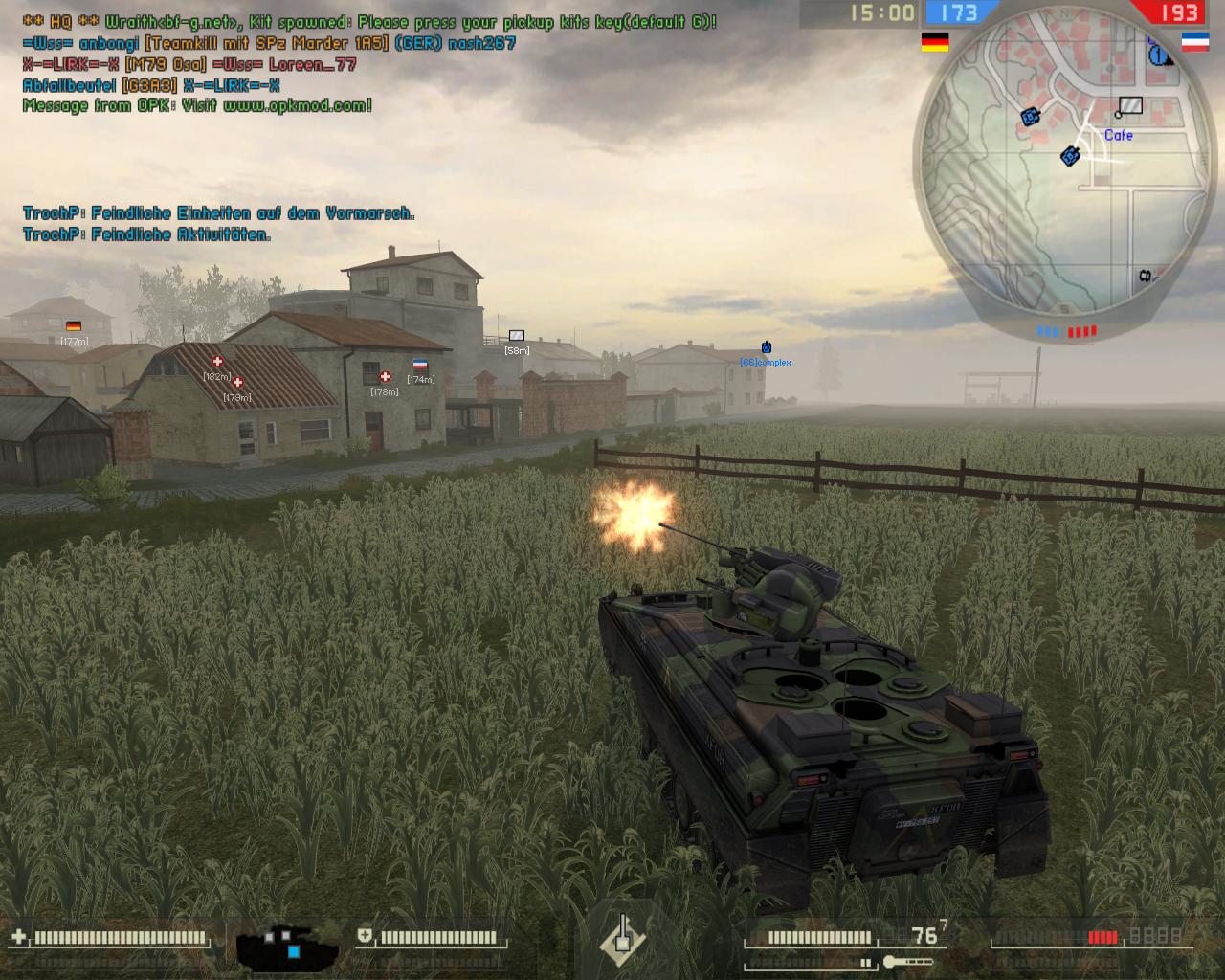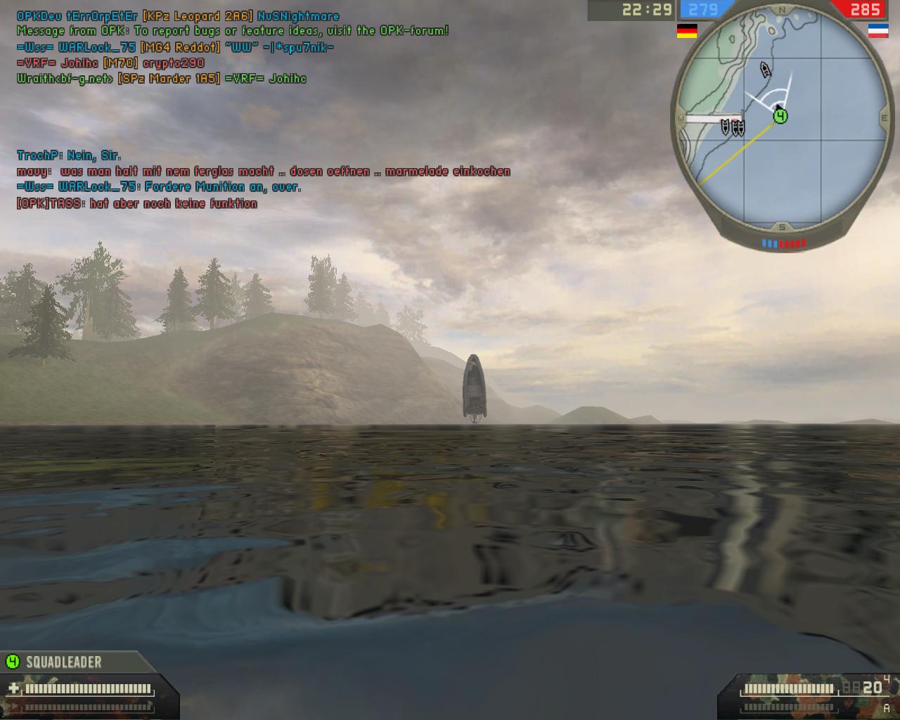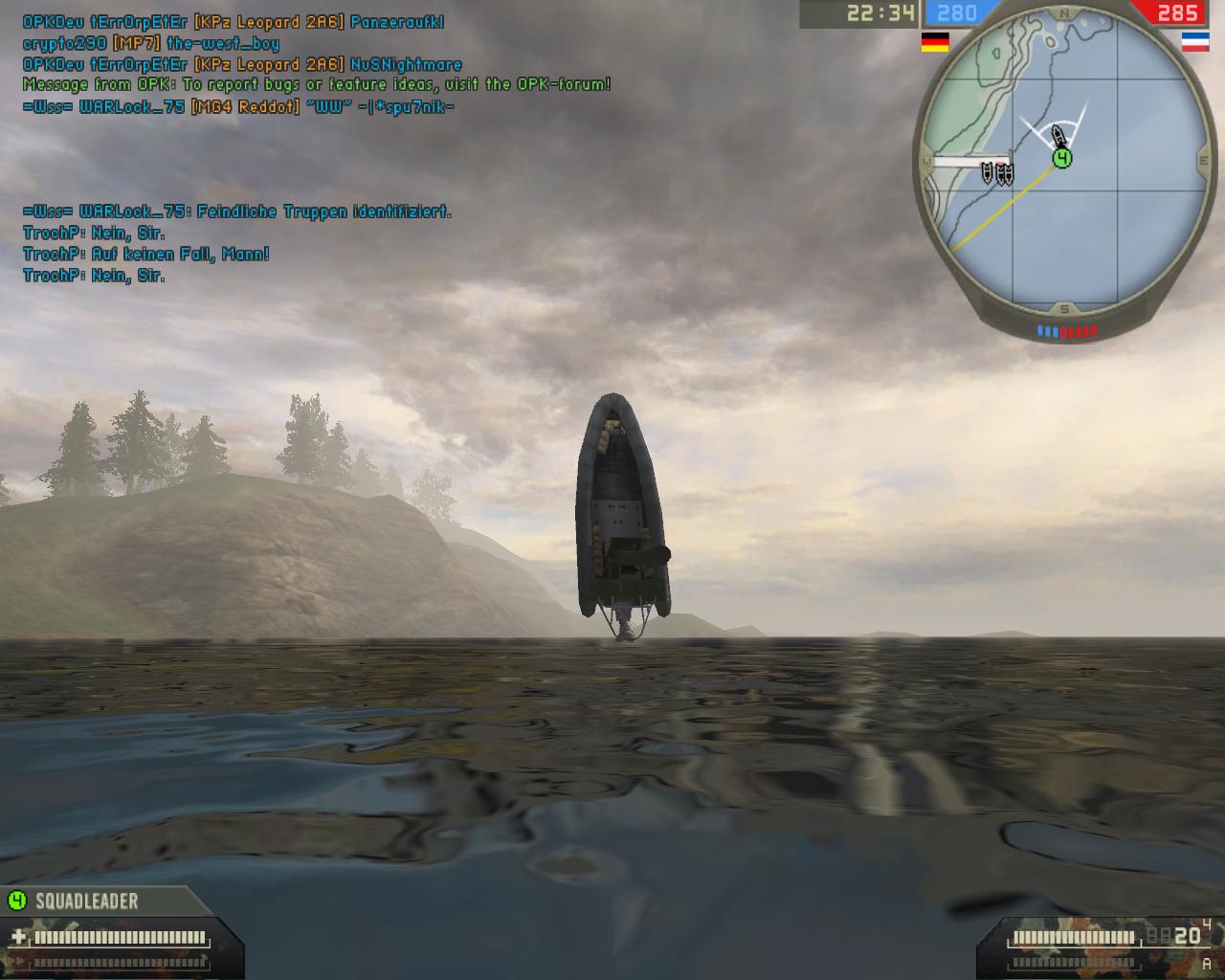 =kettcar= 259 Report Posted June 20, 2008 (edited) Hallo zusammen, Noch sind es bei mir 59 Minuten bis zum Release der OPK 0.25 Testversion, genug Zeit also um hier was zu schreiben. Wie ihr der News entnehmen könnt sind diesmal vier Karten dabei, und neues Material. Diese Thema ist dazu gedacht über eure Fragen, Vorschläge usw. zu diskutieren. Oder habt ihr sogar einen Bug gefunden, dann macht einen Screenshot und postet ihn hier. Je mehr Bilder desto besser. Wie immer bei nem Test, ein paar kleine Sachen worauf man achten kann: -funtionieren die Sounds (Nachladen/Motorengeräusche) -funktionieren die Fahnen(einnehmen/umschalten usw) -wie ist die Waffenbalance -Fahr und Flugzeugsteuerung -Mapbugs/Balance also eigentlich Sachen die wir als Betatester schon die ganze Zeit machen und eigentlich müsste alles rund laufen. So nun sinds noch 43 Minuten und ich wünsche euch: Viel Spass mit der OPK 0.25 Testversion! EDIT: Die Testserver laufen OHNE Punkbuster!! bitte beachten^^ Edited June 20, 2008 by SWIZZ=kettcar=