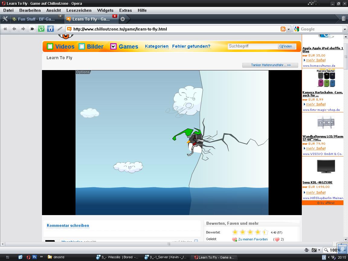 BlackBrain111 20 Melden Geschrieben 23. Mai 2009 (bearbeitet) Learn 2 Fly cooles Spiel und macht immer mehr fun...aber ich schaff den 6000m Sprung einfach nicht Ihr kennt sicherlich den kleinen "film" Animation vs Animator. Das is jetze zu einem Spiel gewurden. >>KLICK<< 6000M hinter mir Bearbeitet 23. Mai 2009 von BlackBrain111