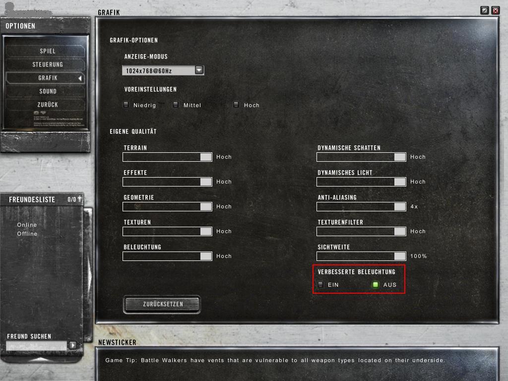 chocochipsbaer 5 Melden Geschrieben 27. Dezember 2008 (bearbeitet) Soooo Ich hab jetzt folgendes herausgefunden. man kann alle Einstellungen an haben und auch so hoch wie man will. Die einzige Kleinigkeit die man beachten muss, ist die das die "verbesserte Beleuchtung" (siehe Bild) AUS sein muss. Ansonsten bekommt man ein recht verbugtes Bild. Problem gelöst, ich kann endlich schön zocken und einen schönen Abend noch Bearbeitet 27. Dezember 2008 von chocochipsbaer