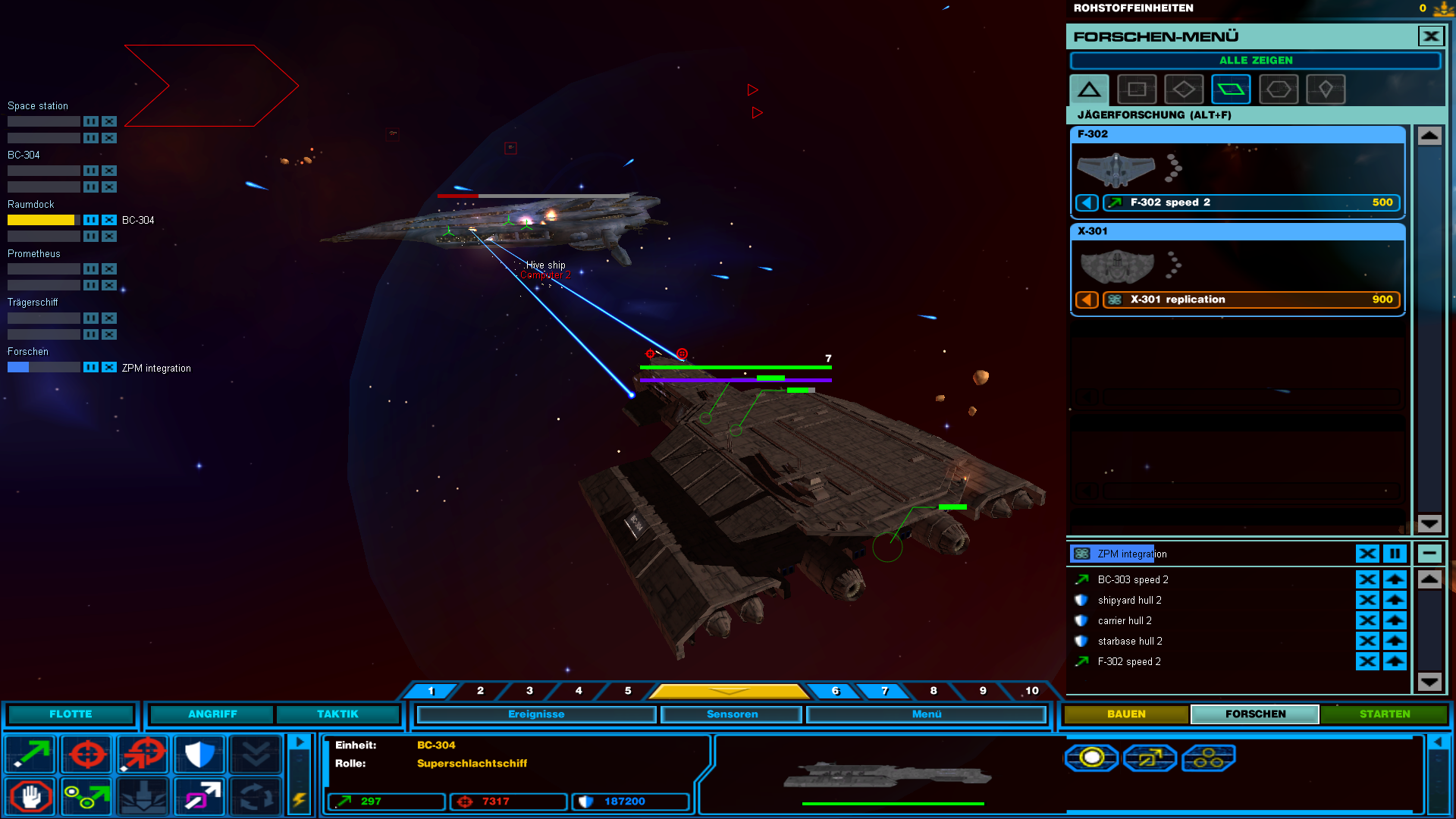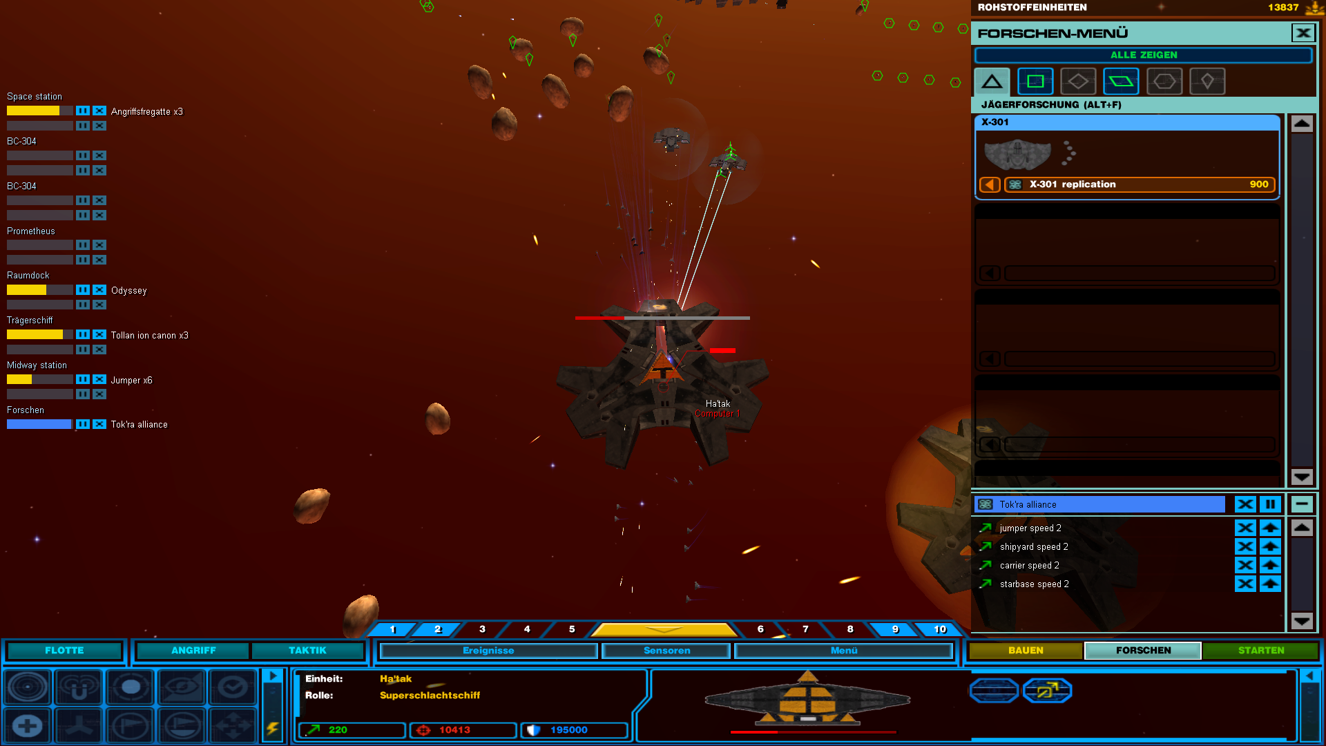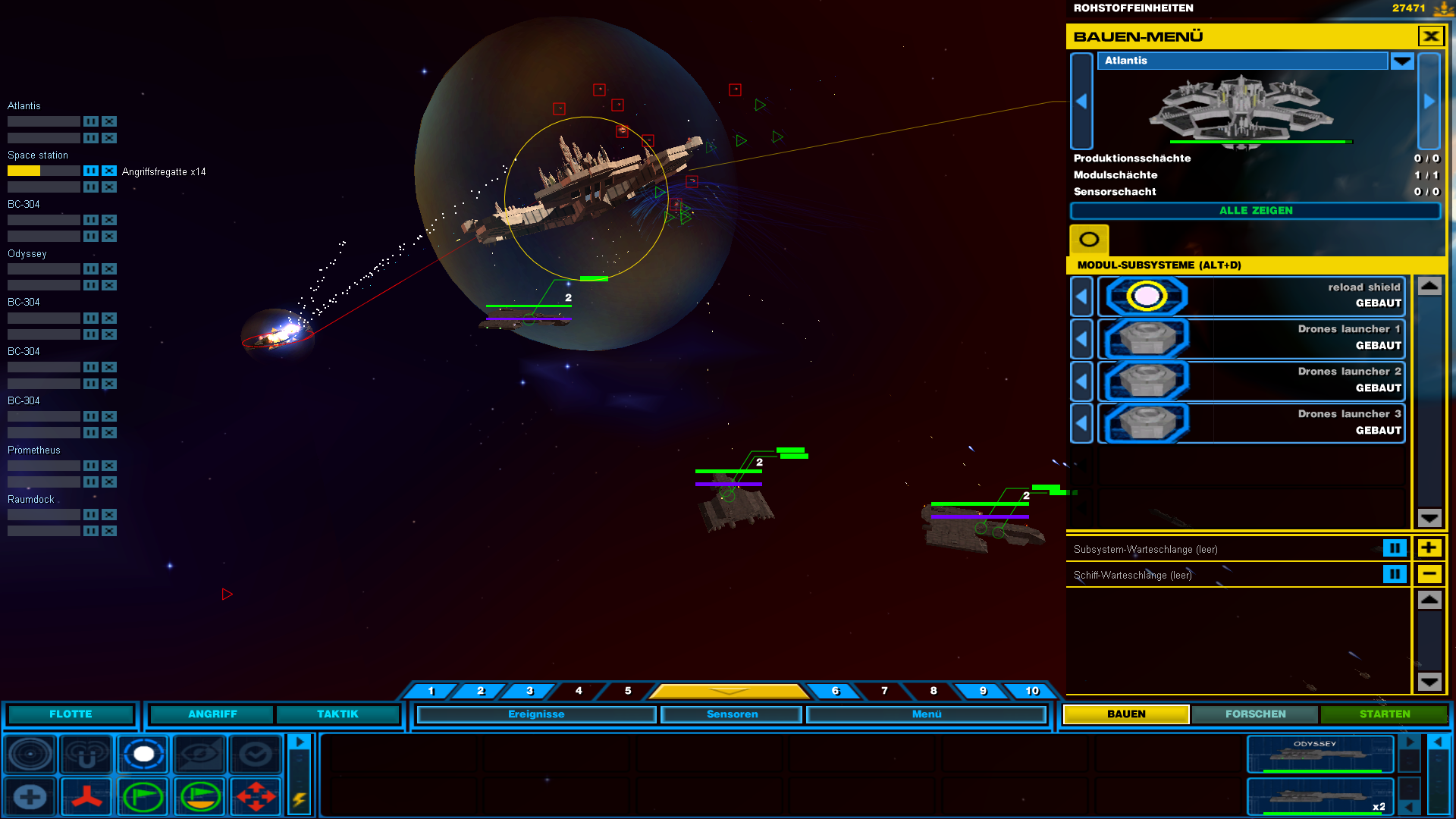 MacGyver8472 1 Melden Geschrieben 20. Februar 2011 (bearbeitet) Angriff der Goa'uld abgewehrt Waren 3 Ha'tak, ca 10 Al'kesh und rund 10 Staffeln Todesgleiter bzw Gategleiter gegen 2 BC-304, Prometheus und 10 Staffeln F-302. Später kam sogar Atlantis als Unterstützung. EDIT: Danach hab ich das aber beendet da keine Seite gewinnen konnte. Haben nur gegenseitig unsere Schiffe vor der Hauptstation zerlegt. Bearbeitet 20. Februar 2011 von MacGyver8472