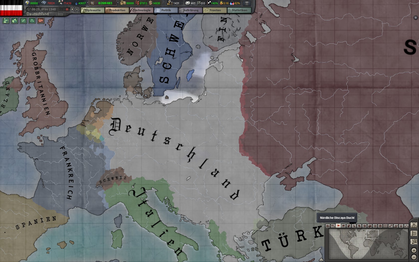Sergio 4302 Melden Geschrieben 4. Dezember 2012 Jaja, ich weiß ziemlich ahistorisch, aber was solls, hatte kein bock zu warten bis der Klaufix den Alliierten beitritt, wobei sich das wohl anscheinend auch einfach durch das nichtauslösen des "Erste Wiener Schiedsspruch"-Events vermeiden ließe. Soll ich jetzt erst Balkan+Baltikum aufmischen, oder direkt gen Westen marschieren? Ich mein momentan befindet sich der größte Teil meiner Truppen eh noch im Osten.
