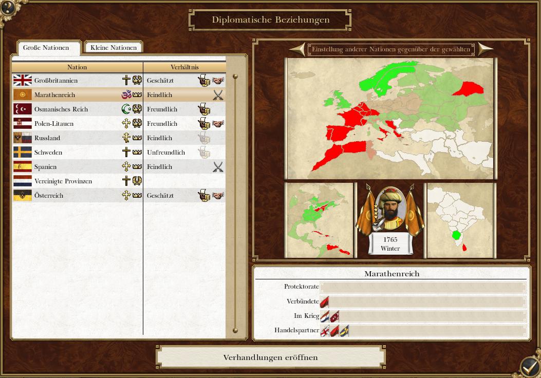 gekko434 1478 Melden Geschrieben 25. November 2009 Bin auch gerade in Indien am "erkunden". Nur leider ist das Mogulreich nicht sehr darüber erfreut. ^^ tja, mogulreich ist bei mir so eine sache... das marathenreich hat im osten ALLES verschlungen, ich konnte mit mühe und not meine siegprovinz die zwei runden halten, indenen ich sie gebraucht habe... mein reich: das marathenreich (=weiß)