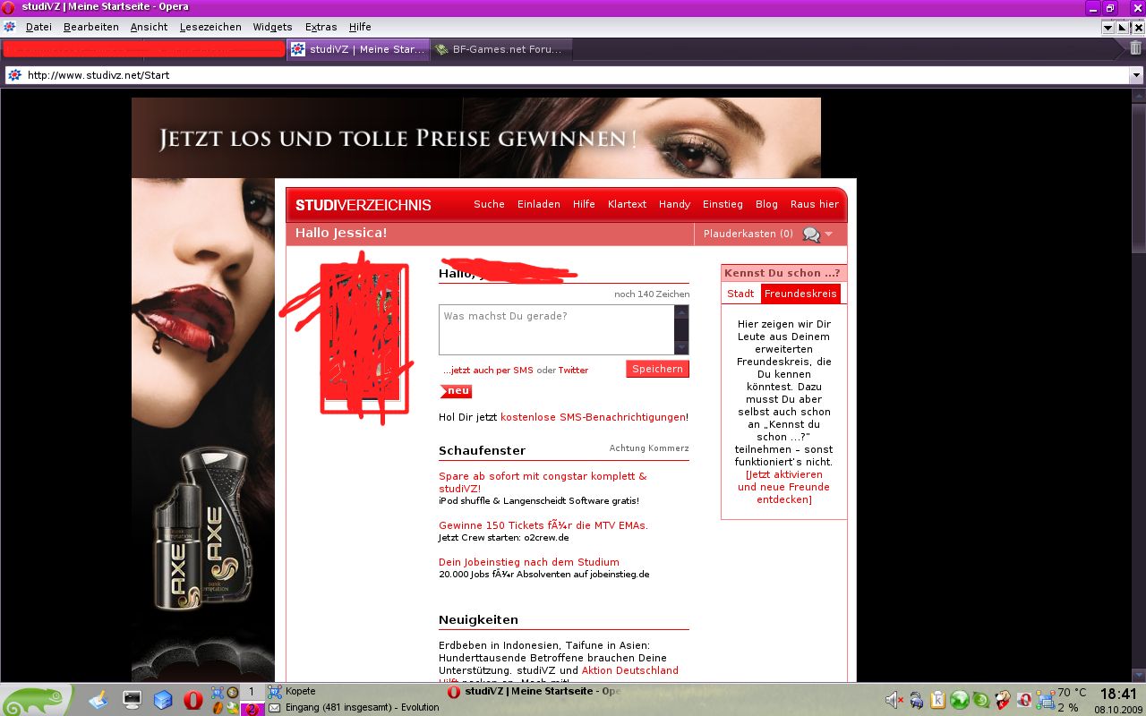 Jessica 20 Melden Geschrieben 8. Oktober 2009 nur die Werbung verhindert die eigentlichen Funktionen von Studi VZ *g* ich kann ja nit mal auf "meine Seite" klicken?