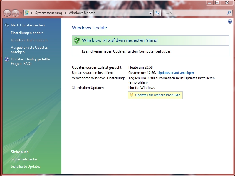 Corsair 217 Author Report Posted September 5, 2009 Wenn also dein WinUpdate nicht an den IE gebunden ist,frage ich wie du das gemacht hast ? Bei Vista musst du das Update nicht mehr über den Browser machen, dafür gibts jetzt ein extra Programm: Jetzt wo ich das sehe,Stimmt. Das Update läuft gar nicht über den IE Das seltsame ist ja das sich trotzdem der IE öffnet. 2 x und sofort abschmiert. Ich gehe gleich mal übers Laptop ins I-Net und mache ein Bild.