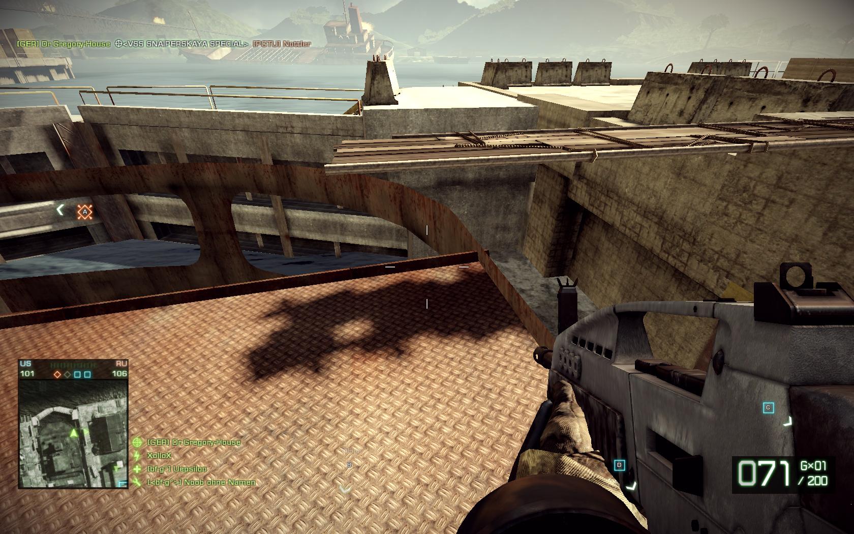 Uepsilon 0 Melden Geschrieben 22. März 2010 some of my screens omg, DX9? Sieht ja ultra hässlich aus Kaum zu glauben dass das das selbe Spiel ist... Nope.. DX10, aber mit ultra-low-details.. mit DX9 bekomme ich allerdings ein fieses flackern, deswegen benutze ich noch 10.. fies finde ich aber, dass bei mir zT Schränke etc. verschwinden.. so dass ich an unsichtbaren objekten hängen bleibe.. achja: das problem ist, dass das spiel bei mir nach 2-3 wochen so derbe anfängt zu ruckeln.. normal kann ich auf medium mit 70+ fps spielen, aktuell ist es grad so, dass ich nur mit 30fps im low rumkrieche.. wenn ich das spiel neu installiere, dann gehts wieder wunderbar.. keine ahnung was dice da verbrät!