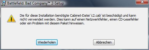 DlKtaeter 0 Melden Geschrieben 16. März 2010 (bearbeitet) hallo, bf:bc2 lässt sich nicht installieren, anbei die fehlermeldung: "Die für diese Installation benötigte Cabinet-Date 'c2.cab" ist beschädigt und kann nicht verwendet werden. Dies kann auf einen Netzwerkfehler, einen CD-Lesefehler oder ein Problem mit diesem Paket hinweisen." google kennt das problem, vorgeschlagene lösungen haben nicht funktioniert und das problem ist auch nirgends als abschließend gelöst zu finden. die betreffende datei ist eine 1,2GB große Zip, Betriebssystem Windows Vista 64bit danke EDIT: auf die HD kopieren und von dort installieren hat geklappt Bearbeitet 19. März 2010 von DlKtaeter