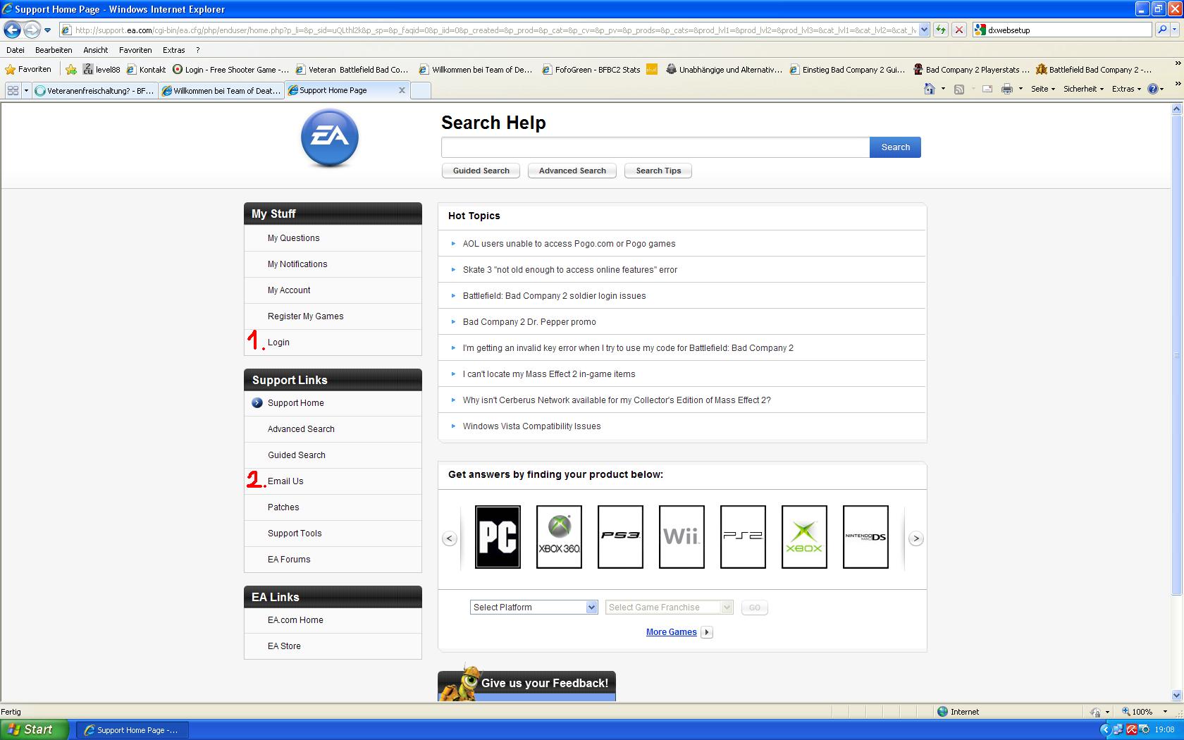 PFLO 167 Melden Geschrieben 28. Juli 2010 (bearbeitet) Da ständig neue Threads zum leidigen Thema des Veteranenstatus eröffnet werden, gibt es hier mal einen Lösungsweg: Wenn es auf http://veteran.battlefield.com/ nicht funktioniert, seine alten Battlefieldteile per Key zu registrieren (Key schon registriert/ keine Reaktion) kann man wie folgt vorgehen: Email an den EA-Support schicken: Muster-Email: hello my problem is that i can't register my games, BF 1942, BFV, BF2, BFHeroes and BF2142 @ http://www.battlefieldbadcompany2.com to get the next veteran status. people from http://forum.ea.com/de said that i should mail you my problem incl. cd-keys. - my Full Name: Hans Muster - E-mail ID in which you want your Veteran status: Hans.Muster@muster.de - my login name for the Veterans web site: Hans.Muster - and My EA Acc Name is Hans.Muster@muster.de my email adress: Hans.Muster@muster.de - Your Persona name for the game you played (For example BF 1943, BF Bad Company and BF BC 2 and Mortal Combat): Hans.Muster = BFBC2-persona Hans.Muster = BF2-persona Hans.Muster = BF2142-persona Hans.Muster = BFHeroes-persona my online nicks are: Hans.Muster BF2 Hans.Muster BF2142 Hans.Muster BFHeroes Hans.Muster BFBC2 @BF 1942: i got the message: Error message! This CD-Key has already been claimed. BF1942 Key: xxxx-xxxx-xxxx-xxxx BF Vietnam: i got the message: Error message! This CD-Key has already been claimed. BFV Key: xxxx-xxxx-xxxx-xxxx BF2: I type my Gamespy-Username and my Password and Nothings Happens. BF2 Key: xxxx-xxxx-xxxx-xxxx SF Key: xxxx-xxxx-xxxx-xxxx EF Key: xxxx-xxxx-xxxx-xxxx AF Key: xxxx-xxxx-xxxx-xxxx BF2142: I type my Username and my Password and Nothings Happens. BF2142 Key: xxxx-xxxx-xxxx-xxxx NS Key: xxxx-xxxx-xxxx-xxxx greetz Angehängt ist noch der Weg, den man auf der EA-Supportseite folgen sollte! Lösungsweg stammt von FofoGreen, hier der Link zum Originalbeitrag Hier ist der Originalbeitrag von mtx.1st.maxpayne Bearbeitet 6. August 2010 von PFLO