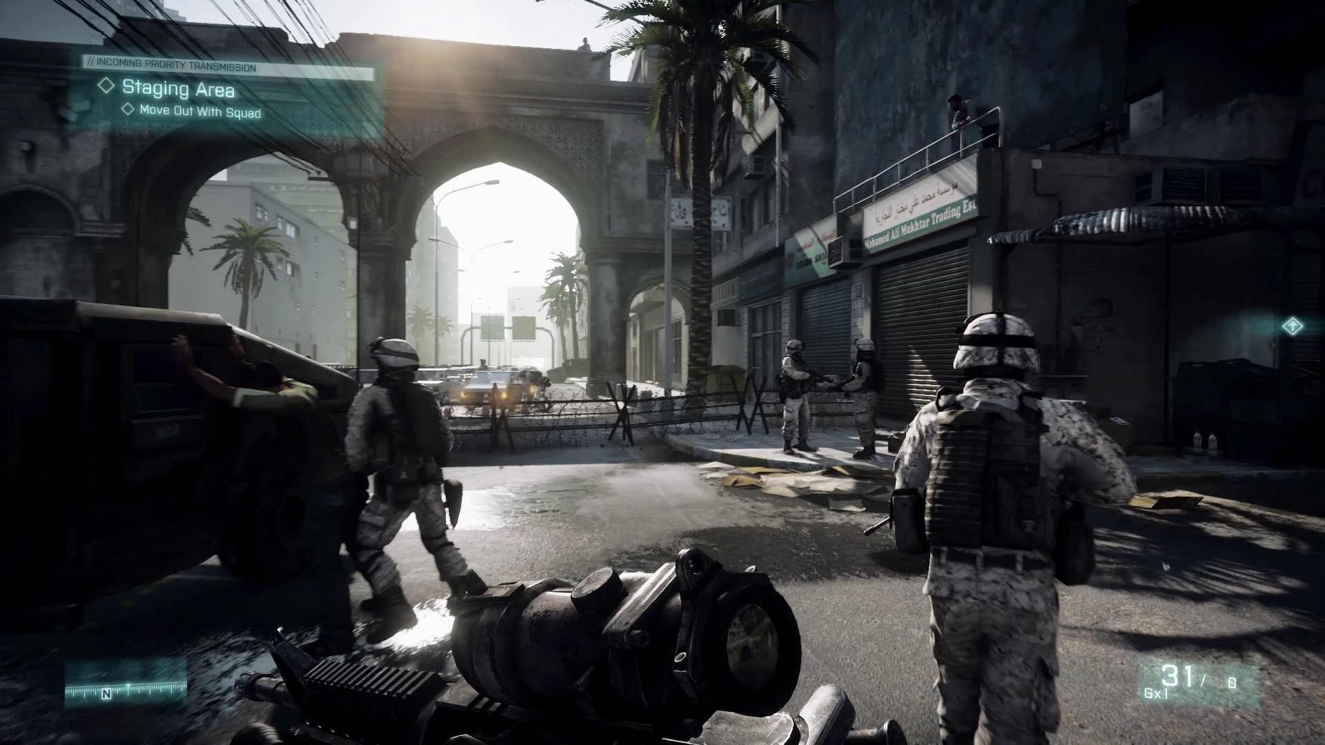 -=Punkbuster=- 166 Melden Geschrieben 2. März 2011 Habe mir den Trailer nun nochmal in Ruhe in hoher Auflösung angeschaut. Vor allem der Anfang gefällt: - Rechts wird ein Gefangener in Handschellen abgeführt - Links am Humvee wird ein Verdächtiger durchsucht - Im Hintergrund läuft eine Fahrzeugkontrolle - Auf dem Dach des Gebäudes steht ein Zivilist und schaut sich alles in Seelenruhe an Weitere Shots aus dem Trailer in der Battlefield 3 Screenshotsektion (Bilder 63 bis 43)