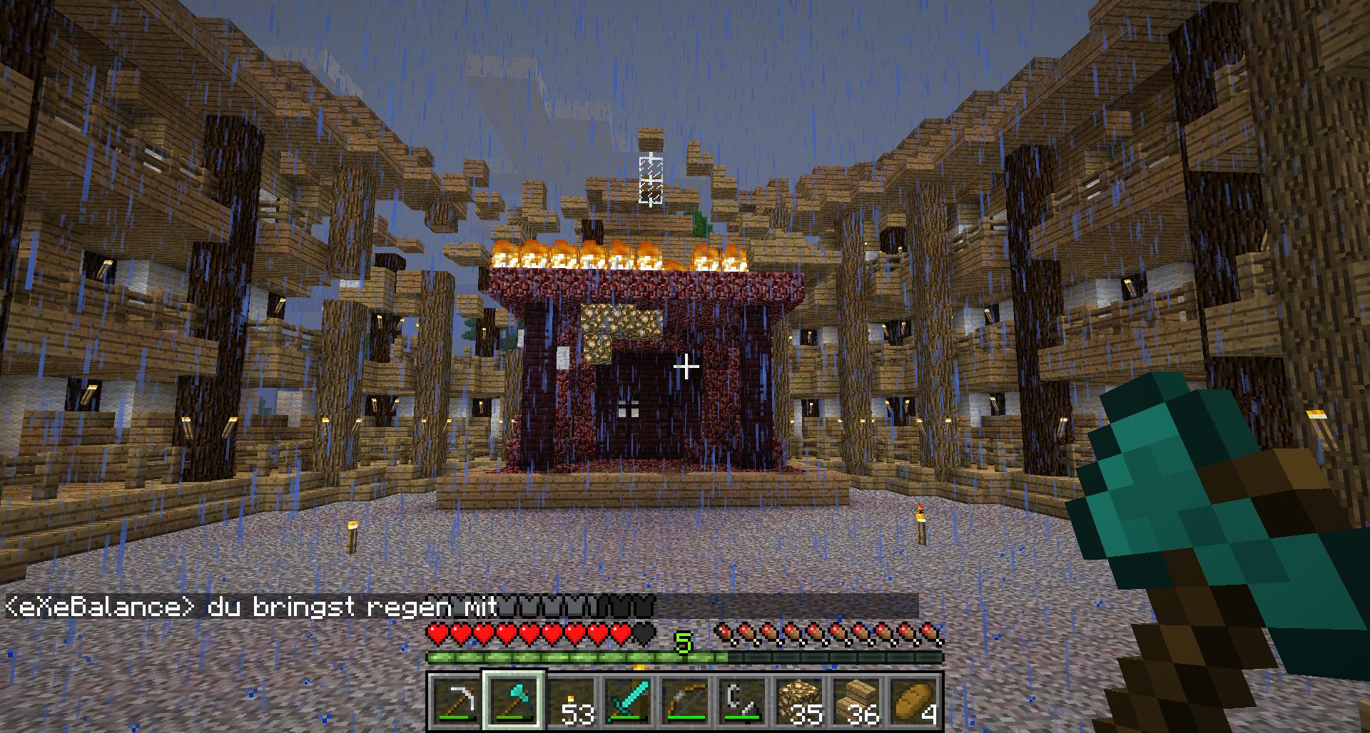 ProfAbsurdis 76 Melden Geschrieben 19. Februar 2012 Hab auch mal eins. Erbaut im Surv.-Mode ab 12.05. 2011. Die Höhe sind 63 Blöcke, war also zu Baubeginn auf Kante! Wer erkennt, was es sein soll, kriegt nen Keks!