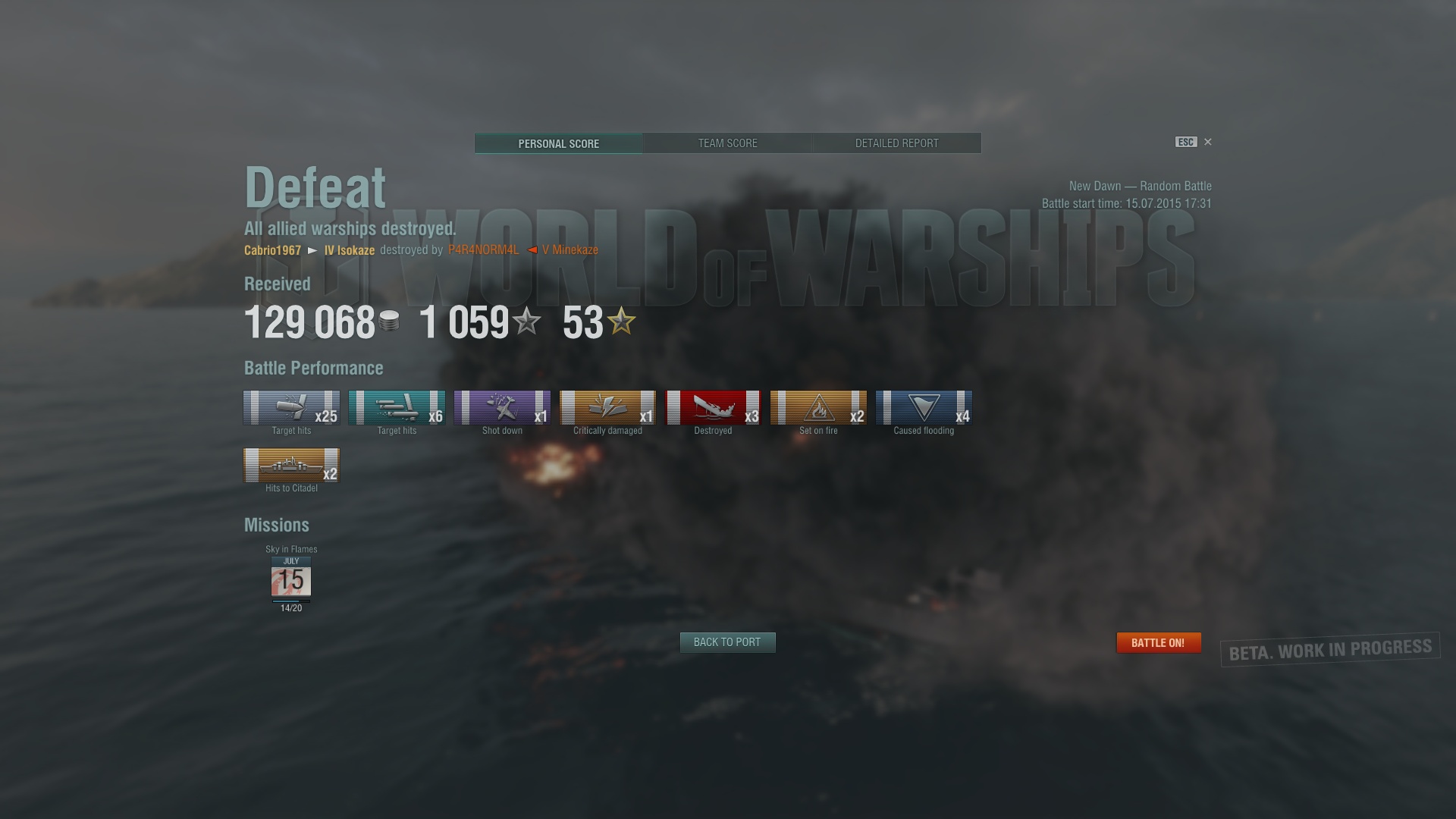 Kiwi ( NZ ) 4 Melden Geschrieben 15. Juli 2015 @Cabrio Ich liebe die "Isokaze" auch. Hatte bei einem Loss mehr Punkte (1400+), als der Erste aus dem Siegerteam. Battleship würde ich gar nicht spielen, hat man keinen Impact aufs Metagame. Sind sowieso nur Punktelieferanten für Flugzeugträger und Zerstörer. Momentan würde ich auch nicht wirklich über Tier 4 hinausgehen, da MM und CV (Flugzeugträger) nicht ballanced sind. Ab Tier 7 wird es noch schlimmer, da kaum einer, aufgrund der vorgenannten Probleme, Heightier spielt. (Asia Server) Wichtig ist die CO-Skills (Captain) hoch zu bekommen. Bis das Spiel wieder in die richtige Richtung kommt, bleiben meine Tier 7+ Schiffe im Hafen. @Spray and Pray Nenene, nur wenn die anderen stur geradeaus, oder mit konstanter Geschwindigkeit sich bewegen geht "Pray" auf. Gerade der Operationsradius (Spot to Torpdistance) ist bei der "Isokaze" nur 900 Meter.