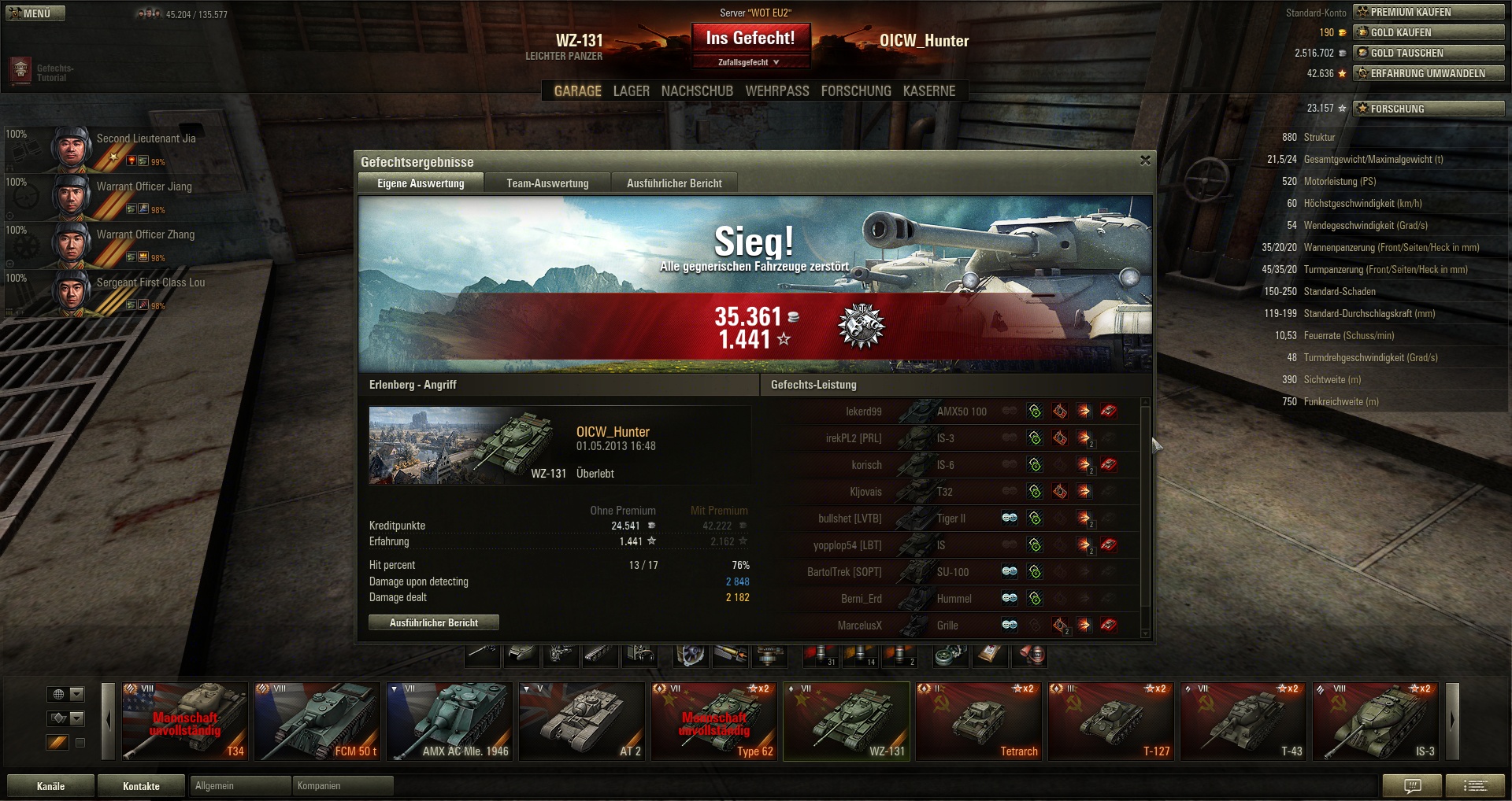 hall0 1758 Melden Geschrieben 8. April 2013 Eine offenbarung wenn man im moment den drecks DB auf T7 gewöhnt ist. Sonst is er auch ziemlich gut. Ich hab meinen spaß mit dem. Könnt aber flinker sein und die kanone dauert ewigkeiten zum einzielen. Dafür hast du 175mm standardpenetration und einen wirklich guten schaden. Der Turm is auch super, da 170mm und schön rund. Da bounced im facehugging auch einiges. Sonst is das teil aber aus papier und man muss aufpassen, das man nicht gerammt wird. Also ich hab richtig spaß mit dem tank, besonders da meine bald 4skill Type59 crew drin sitzt.
