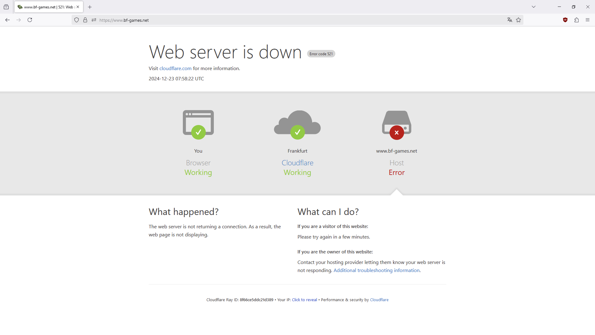 scratchy 587 Melden Geschrieben 22. Dezember 2024 Entweder das oder über VPN, stell ich gerade fest. Durch Berlin geschleift kein Problem, ohne krieg ich nur 'Web server is down (Error code 521)'. Wieso sagt Cloudflare nicht einfach, dass es mich hasst und lügt dann noch so dreckig?