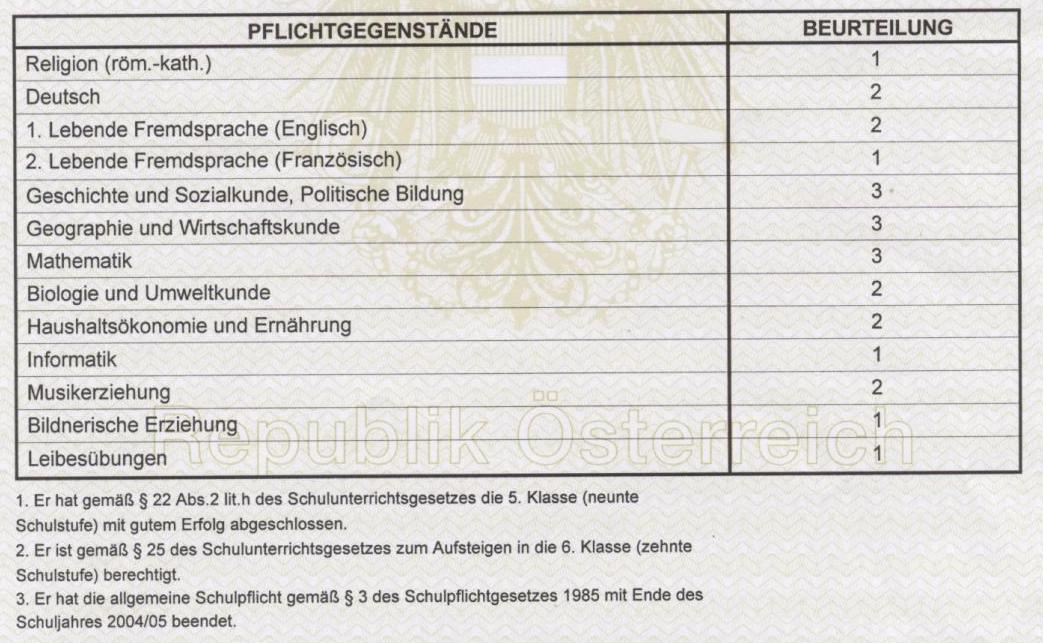 Meine Noten waren besser ausgefallen als erwartet. Nur 3x eine 4. Ein paar Dreien und Zweien. Und eine Eins in Deutsch (als Fremdsprache) und Englisch.